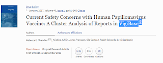 Chandler RE, Juhlin K, Fransson J, Caster O, Edwards IR, Norén GN. Current Safety Concerns with Human Papillomavirus Vaccine: A Cluster Analysis of Reports in VigiBase®. Drug Saf [Internet]. 2017 Jan 1 [cited 2020 Feb 2];40(1):81–90. Available from: https://doi.org/10.1007/s40264-016-0456-3